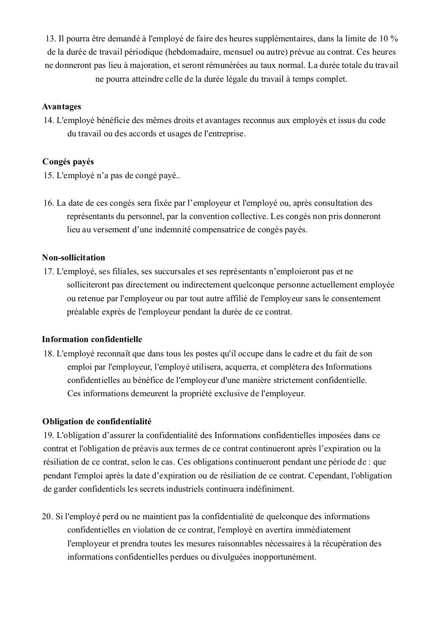 13. Il pourra être demandé à l'employé de faire des heures supplémentaires, dans la limite de 10 %