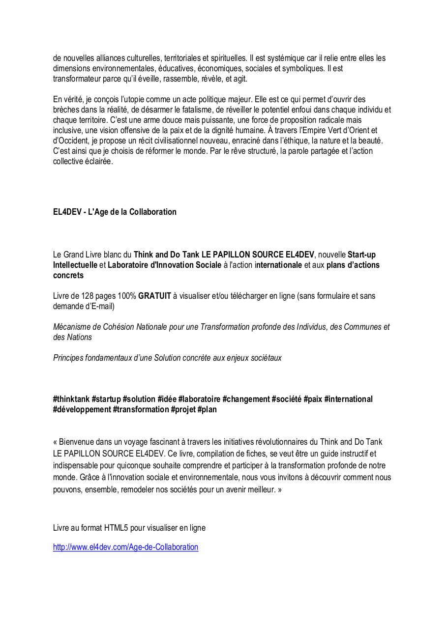 Le Grand Livre blanc du Think and Do Tank LE PAPILLON SOURCE EL4DEV, nouvelle Start-up